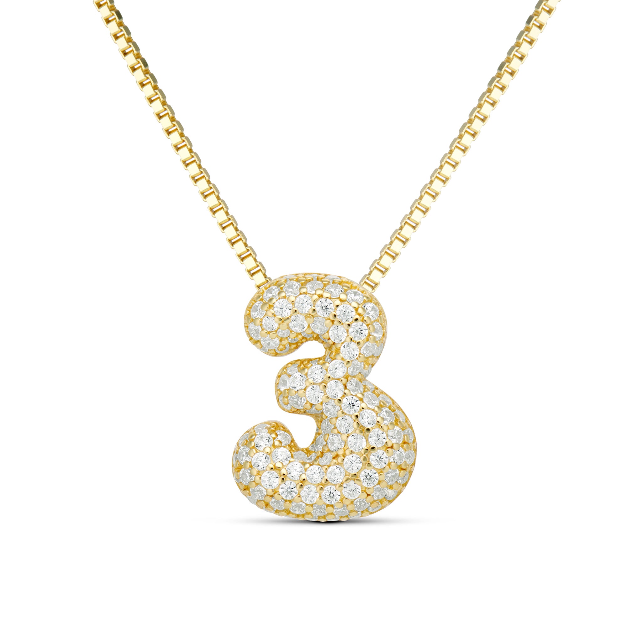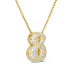 <p> The Iced Jumbo Number Necklace is a bold and eye-catching accessory that makes a statement! It is available in numbers 0 to 9, allowing you to personalize your necklace with the lucky number of your choice. <p> This epjewels.com necklace is made with 925 sterling silver and 14k gold plating, giving it a luxurious and high-quality finish.