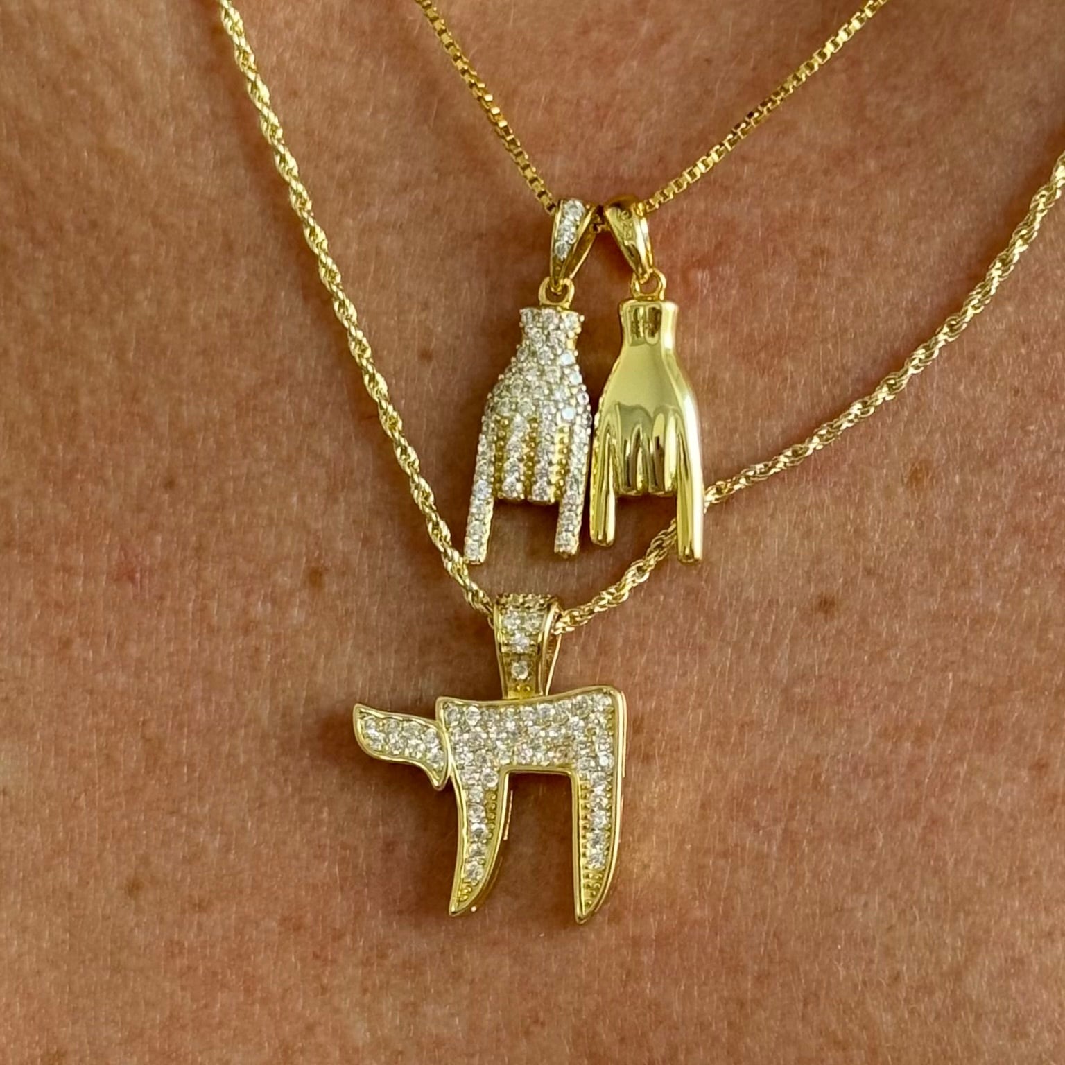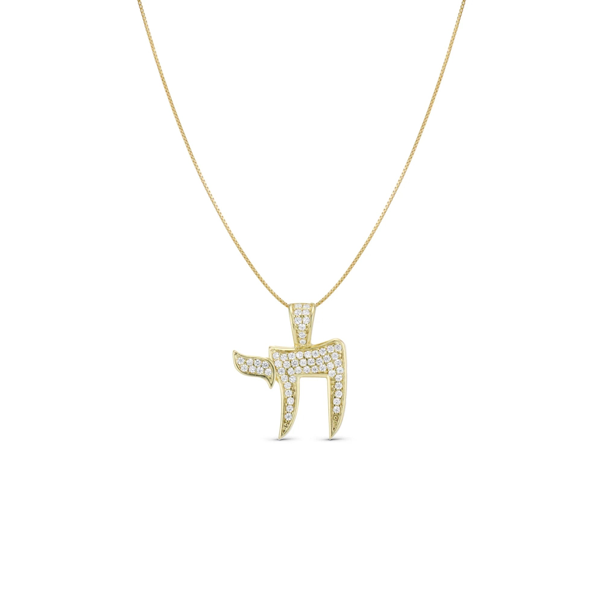 The Iced Chai Necklace is a stunning piece of jewelry made from sterling silver with 14K gold plating. The Chai symbol holds significant meaning in Jewish culture as it represents life, luck, and well-being. This epjewels.com pendant necklace features cubic zirconia stones with intricate detailing and a delicate design, making it a beautiful accessory to wear or gift to someone special. The combination of sterling silver and 14K gold plating gives the necklace a luxurious and timeless look. The Chai pendant serves as a meaningful reminder to embrace life and cherish every moment. It can be a symbol of good fortune and a source of inspiration for those who wear it.