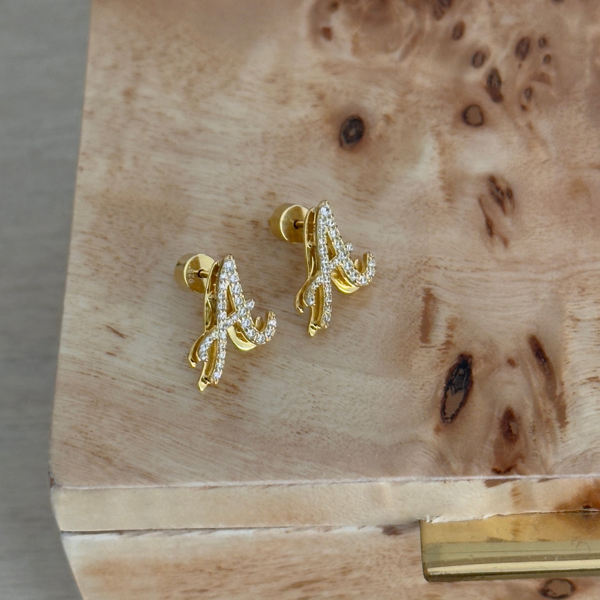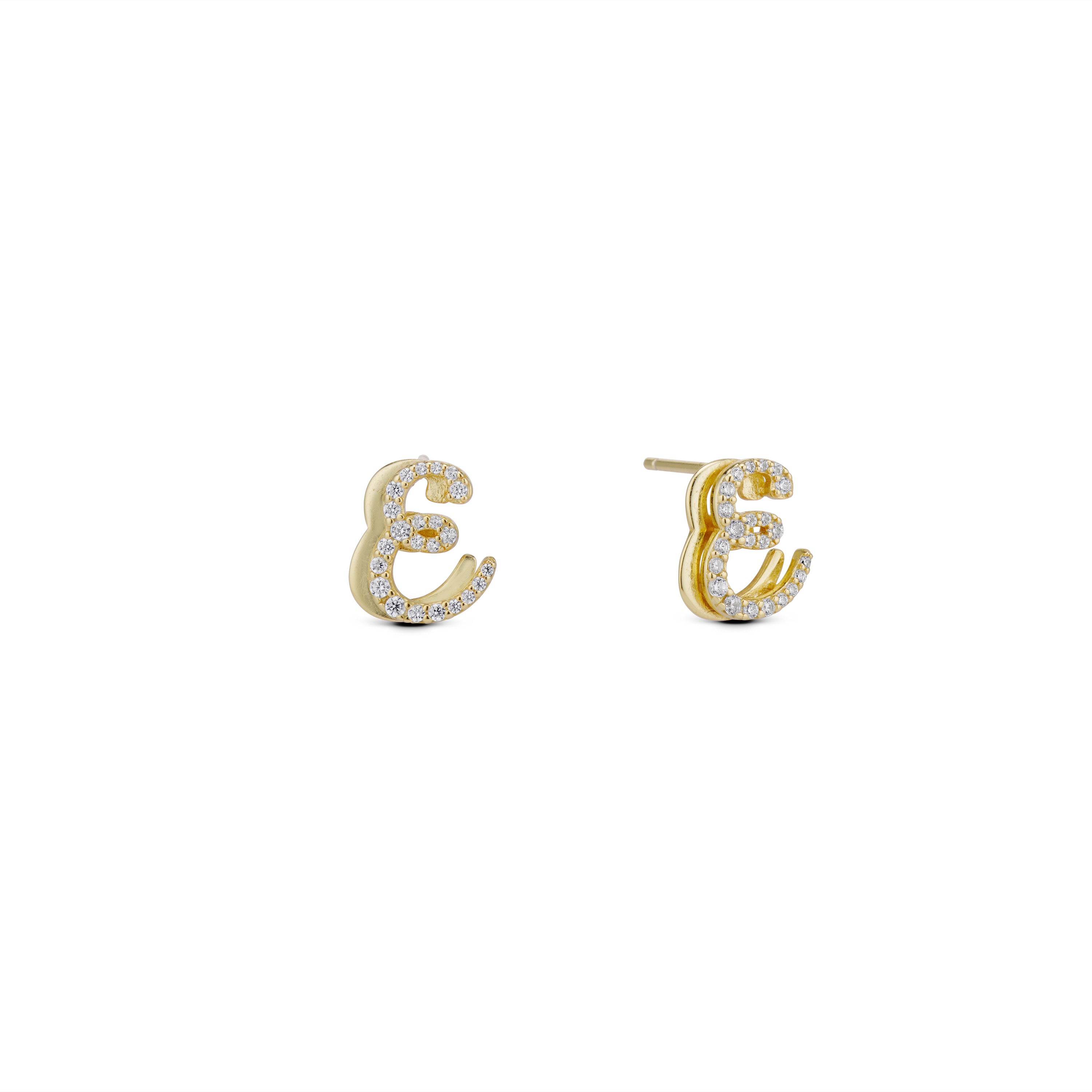 Designed in dainty script lettering with a luxe double-plated finish, these earrings are crafted in 925 sterling silver with 14k heavy gold plating. A subtle statement made to elevate your everyday style. Please note, this product is sold individually or as a pair: