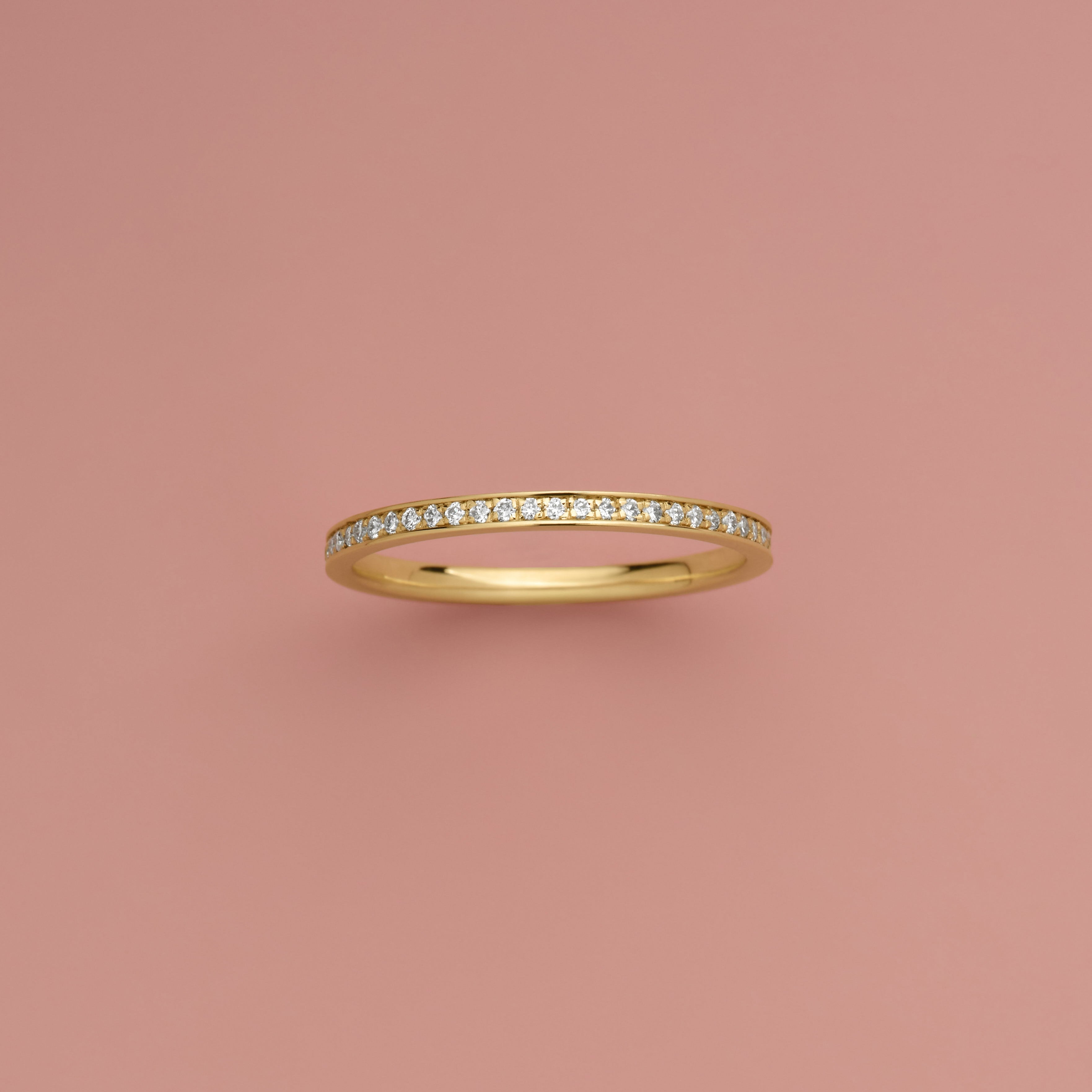 A thin 14K gold band channel set with lab-grown diamonds all the way around for a continuous, refined finish. Delicate yet classic, it’s designed to layer seamlessly with your rings.